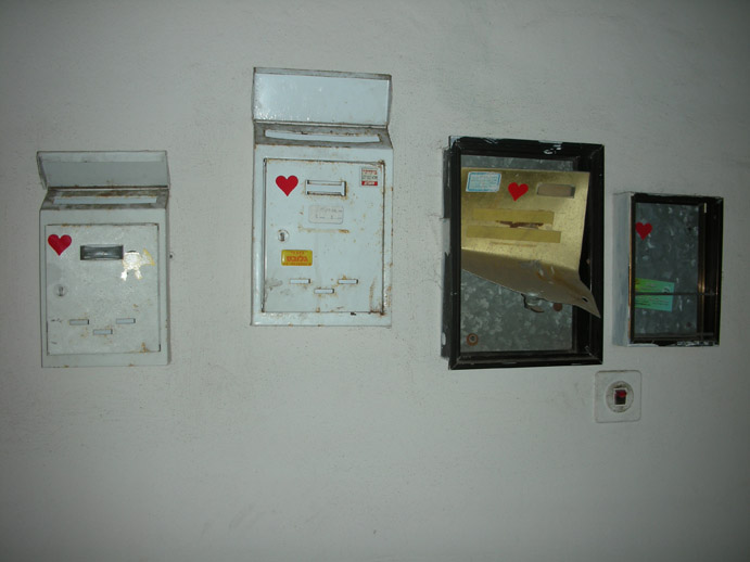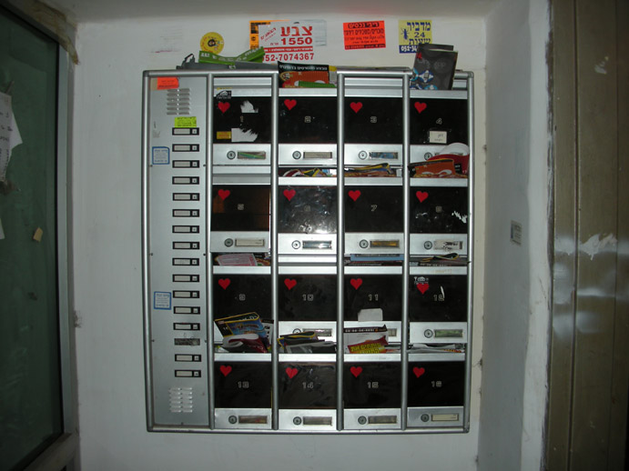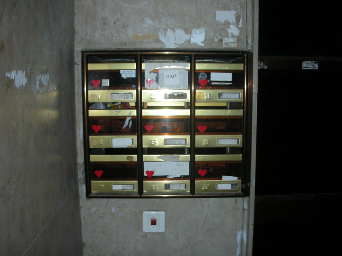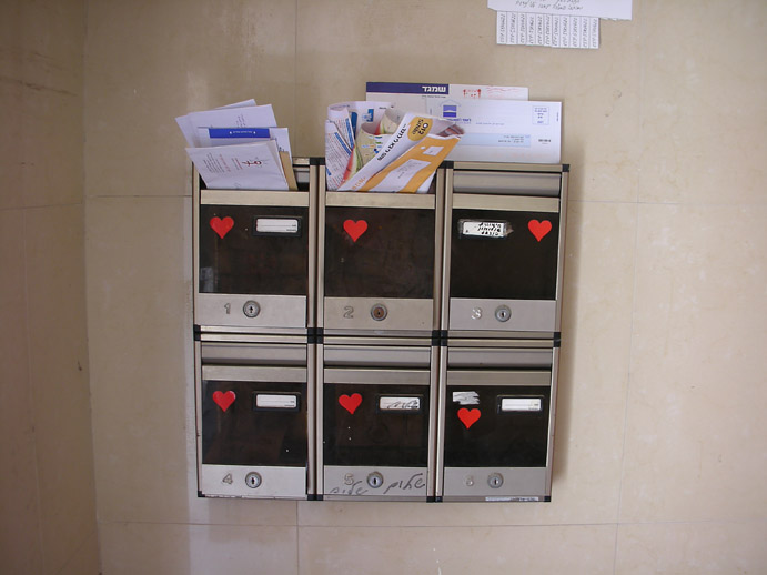 24,000 heart-shaped stickers on mailboxes around the city